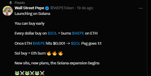 Além disso, o projeto busca utilidades reais para sustentar seu crescimento. Entre os próximos passos estão a coleção de NFTs “Wall Street Pepe 5000” e um aplicativo comunitário que visa reforçar a interação entre holders.