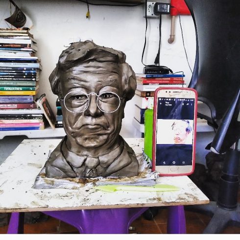 “Eu vi o comentário dele e, curioso, fui ver as artes. Aí vi o talento dele e logo entrei em contato pra fazer o busto do Dorian Nakamoto”, explicou Felício.