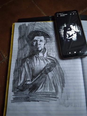 Ele ganha a vida como pedreiro, mas acabou com poucos trabalhos este ano. A alternativa foi viver de sua arte. E o jeito simples e humilde do artista pode ser visto em seus traços.