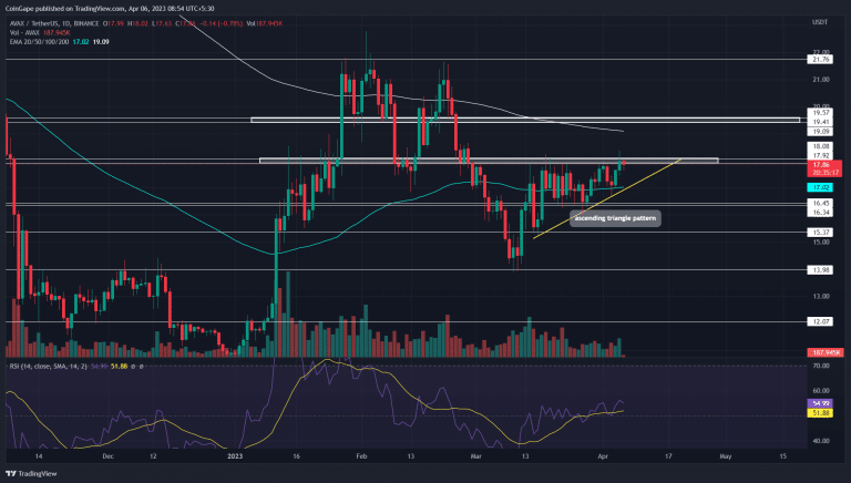Com a crescente incerteza no mercado de criptomoedas desde o ano passado, o preço da Avalanche (AVAX) está ressoando ativamente entre uma resistência horizontal de US$ 18 e uma linha de tendência de suporte crescente.