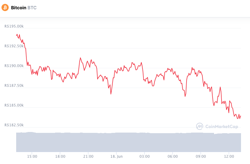 Pelo segundo dia consecutivo, o preço do Bitcoin (BTC) opera em queda no mercado, conforme mostram os dados do CoinMarketCap. A criptomoeda registra baixa de 6,25% nesta sexta-feira (18), cotada a US$ 36.469,56. No Brasil, um Bitcoin vale R$ 183.680,15.