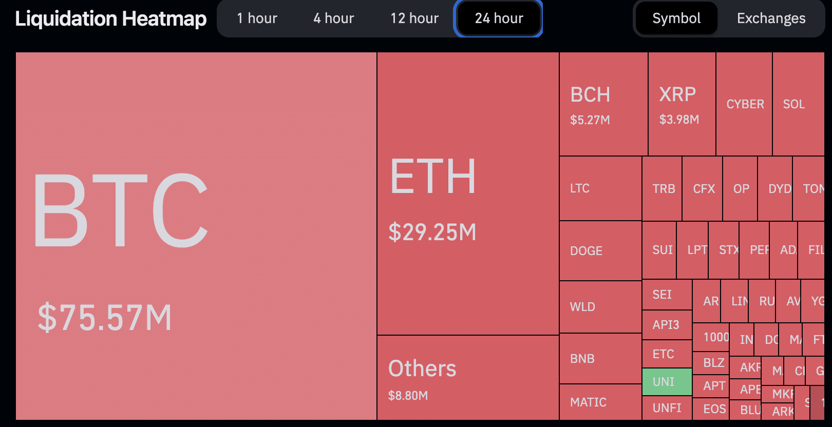 A maior perda individual ocorreu na Binance em uma negociação de ETH que liquidou US$ 2,15 milhões, mas outros 45.817 traders também foram liquidados nas últimas horas.