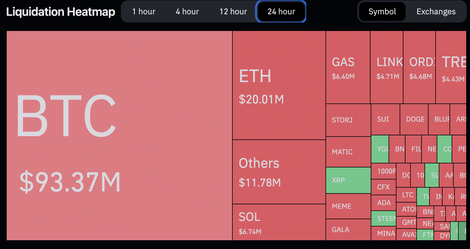 As liquidações do mercado atingiram 60.679 traders com fortes prejuízos, incluindo a maior liquidação individual de US$ 14,8 milhões em um contrato de BTC negociado na OKX.