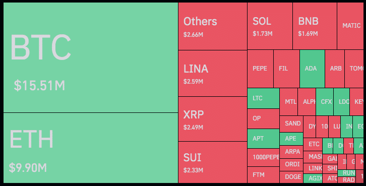 Já o volume de liquidações caiu 14,3% e abriu o dia em US$ 52,3 milhões, com mais um equilíbrio: US$ 25,45 milhões vieram de posições compradas enquanto US$ 26,94 milhões vieram de posições vendidas.