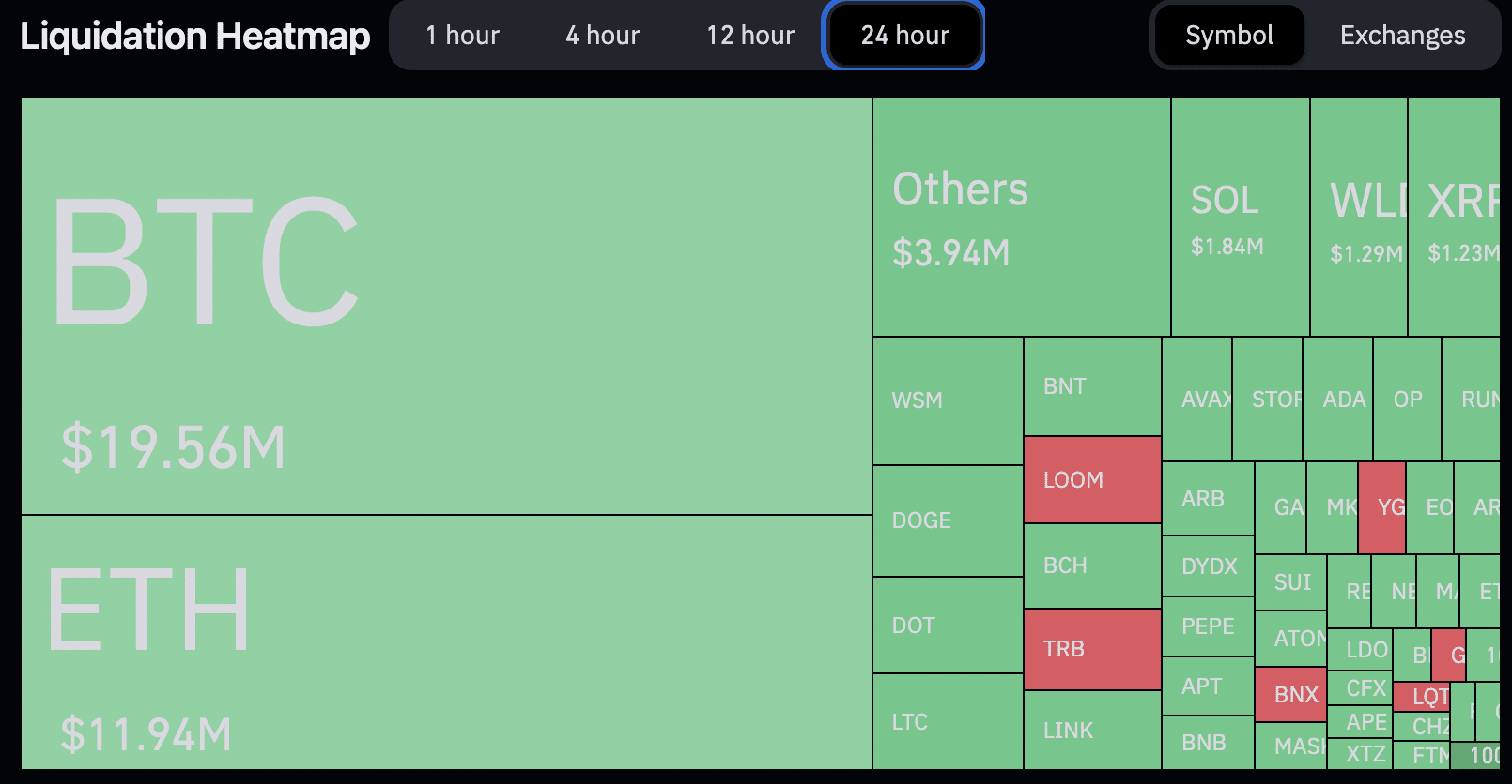 A maior liquidação individual foi de US$ 1,5 milhão na OKX em um contrato de BTC, e 19.900 traders foram liquidados nas últimas 24 horas.