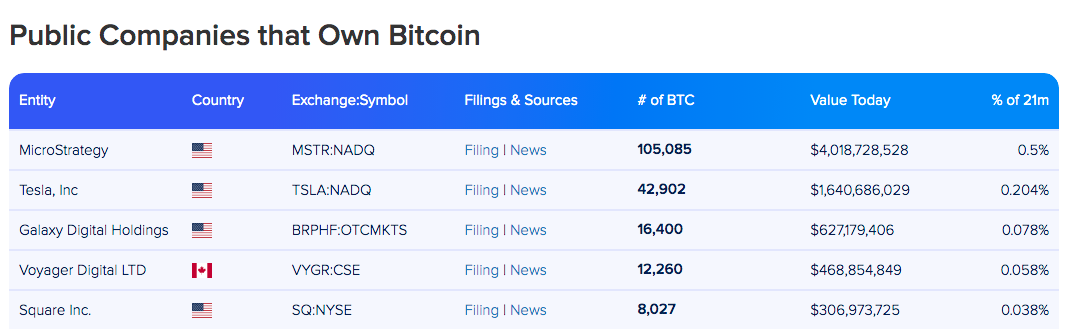 A Tesla realizou, em fevereiro, sua primeira e única compra de BTC para compor o caixa da empresa. Apesar da venda posterior, a empresa ainda é a segunda companhia que mais possui BTC, atrás apenas da MicroStrategy.