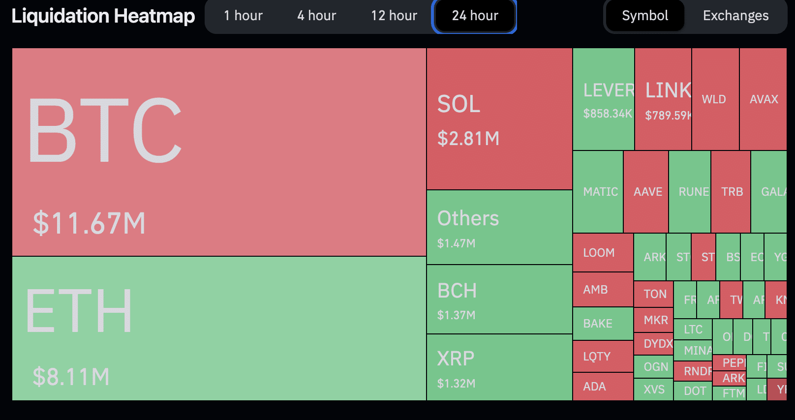 A maior liquidação individual ocorreu na OKX novamente, onde uma posição de ETH movimentou US$ 758 mil. No total, 14.159 traders foram liquidados nas últimas 24 horas.