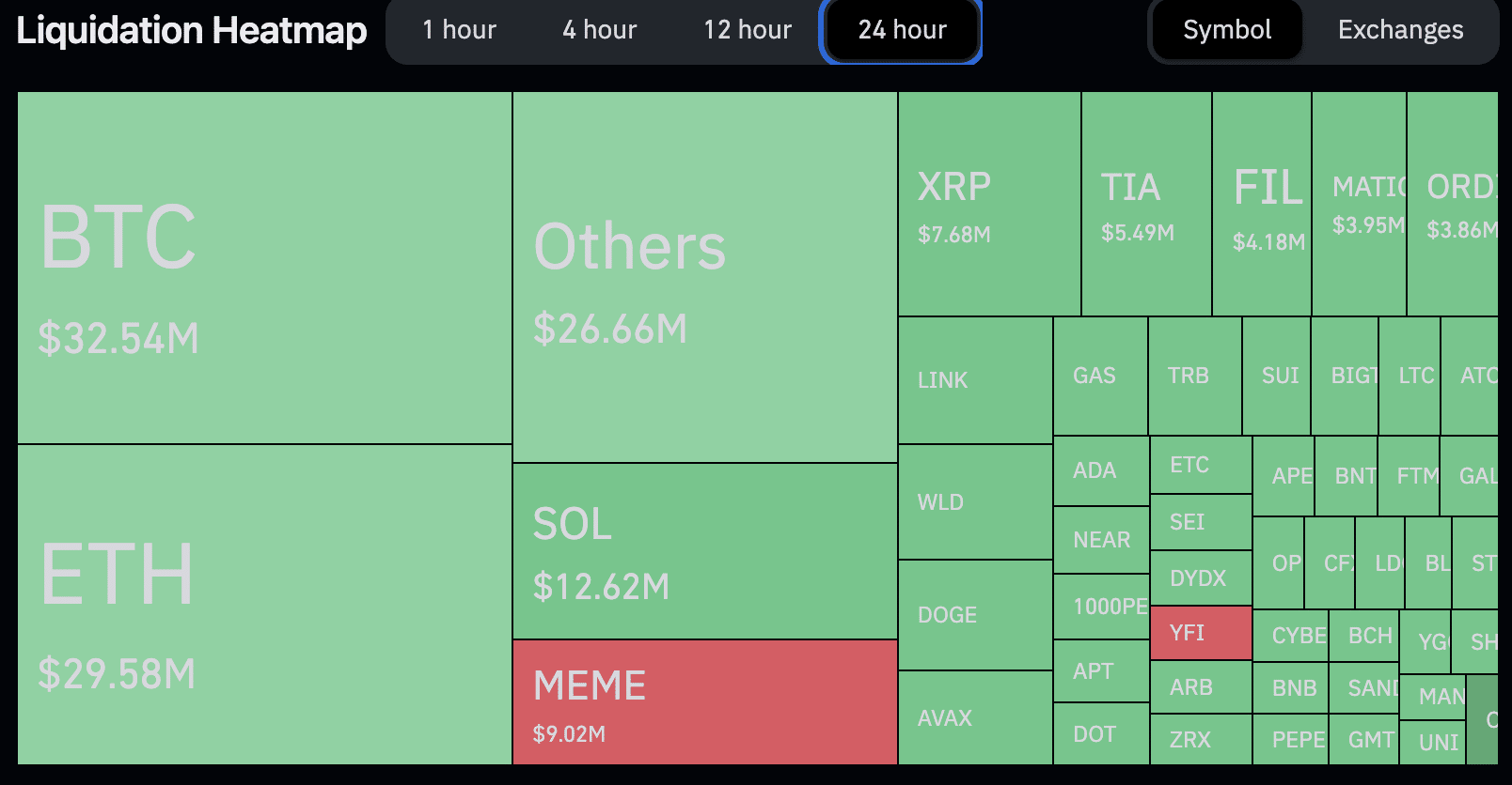 Já quem apostou na alta do mercado sofreu com as liquidações – as posições compradas liquidaram US$ 132 milhões. No total, o volume de liquidações atingiu US$ 185,7 milhões, uma alta de 79%, e o Bitcoin liderou as perdas com liquidações superiores a US$ 32 milhões.