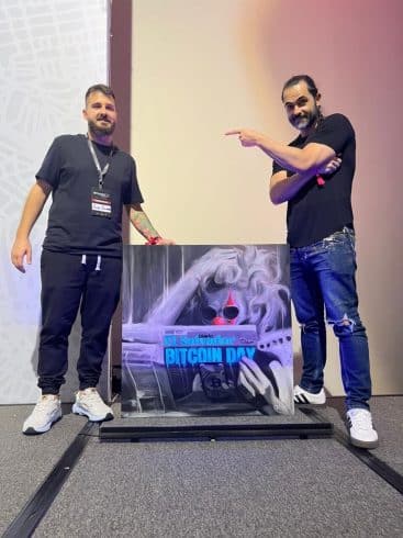 Além do conteúdo, o Bitsampa também contou com o leilão de uma obra de arte ao vivo. Intitulado Satoshi The Clown (Satoshi, o Palhaço), o quadro foi criado pelo artista Fernando Quevedo e doado ao evento para leilão.