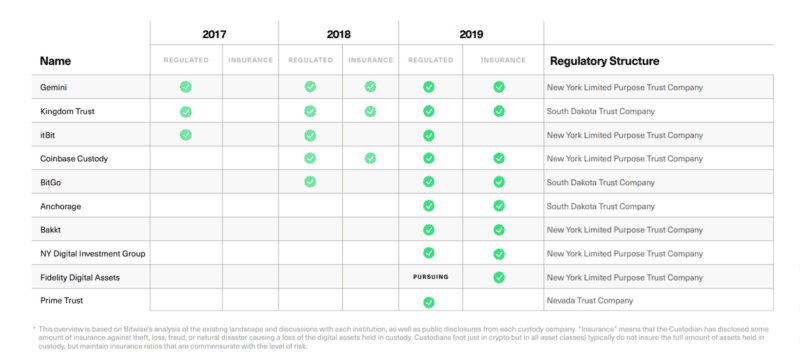 O mercado Futuro regulado tornou-se “significativo”, disse a Bitwise, com o mercado de Futuros de Bitcoin na CME movimentando cerca de US$235 milhões em agosto de 2019. O mercado de custódia de Bitcoin também se tornou “totalmente institucional”, acrescentou a empresa.