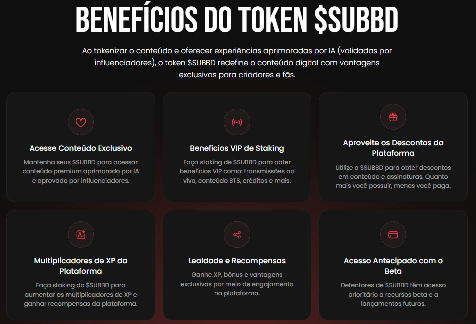 O projeto oferece assistentes de IA personalizáveis, conteúdos exclusivos e um sistema de staking com rendimentos de até 20% ao ano. Com isso, criadores podem transformar sua base de seguidores em uma fonte direta de receita, sem depender de plataformas centralizadas.