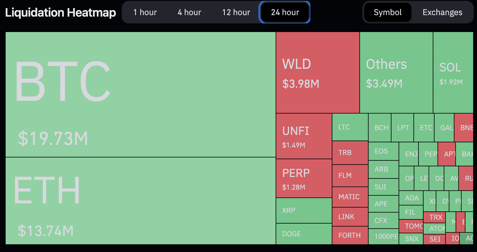A maior liquidação individual ocorreu na Bitfinex com uma operação de BTC/USDT que liquidou US$ 1,26 milhão. No total, 23.686 traders foram liquidados nas últimas 24 horas.