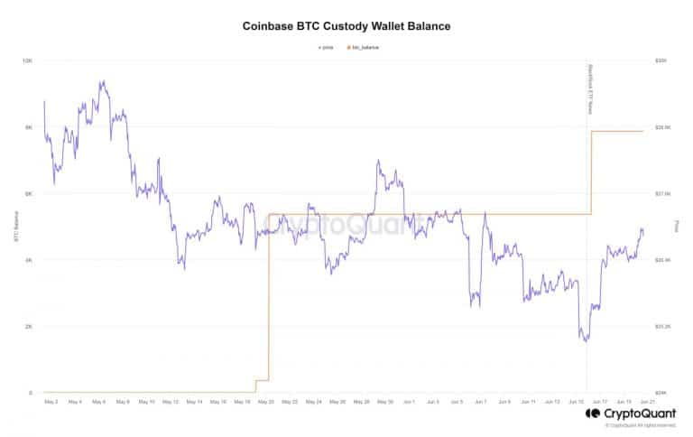 Conforme noticiou o CriptoFácil, a BlackRock liberou sua proposta de ETF de Bitcoin (BTC) anunciando a Coinbase como custodiante dos BTC. O pedido ainda não foi aprovado, mas a maior exchange dos Estados Unidos já registrou um grande influxo de BTC após o anúncio.