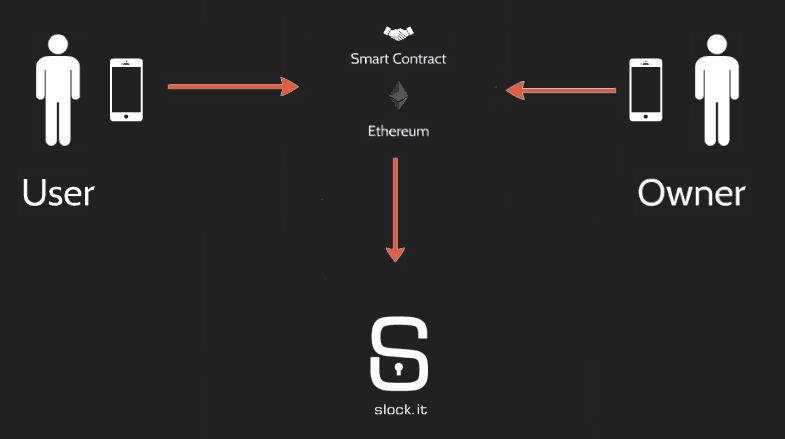 A Slock.it é uma empresa que tem como objetivo utilizar contratos inteligentes para facilitar o aluguel de objetos: bicicletas, carros e até casas. Com esse sistema, um contrato inteligente de aluguel é criado entre as partes definindo o prazo de locação e os valores. Após definidas as “cláusulas”, o locatário deposita os tokens correspondentes ao pagamento no endereço do contrato, que libera o acesso deste ao bem locado. Após o fim do contrato, o acesso do locatário é bloqueado e o bem fica liberado para uma nova locação. Com isso, a Slock.it elimina a necessidade de intermediários (imobiliárias, locadoras de carros, etc) e de seus custos.