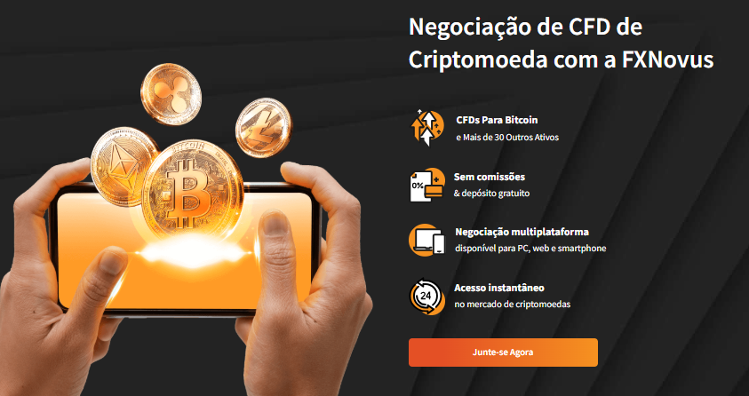 Em seu site, a FXNovus se apresenta como “o provedor de CFD n° 1 do mundo”. Com relação às opreações no mercado de criptomoedas, a empresa oferece CFDs para Bitcoin e mais de 30 outros ativos. CFD significa “Contrato por Diferença”, um produto financeiro derivativo que permite especular sobre a variação de preço de um ativo subjacente.