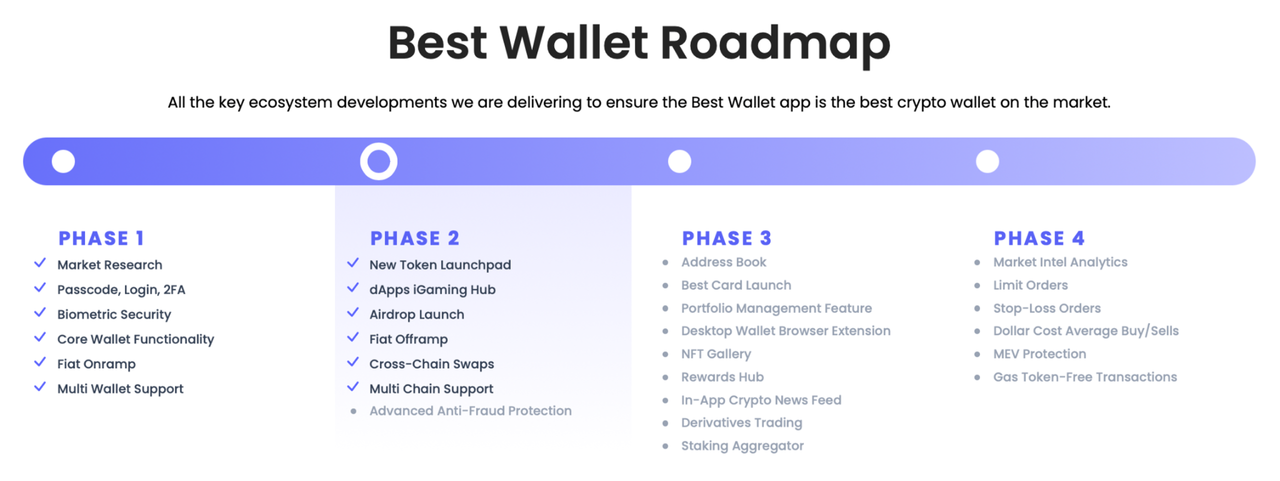 Su hoja de ruta muestra cuánto más está por venir. Las analíticas de mercado ampliadas ofrecerán a los usuarios información más profunda sobre rendimiento, identificación de tendencias y señales en tiempo real para apoyar decisiones informadas. Las transacciones sin necesidad de tokens de gas eliminarán la obligación de mantener tokens de red como ETH, BNB o SOL para pagar comisiones, mientras que las compras automáticas DCA permitirán a los inversores acumular cripto sin sesgos emocionales ni la presión de intentar acertar el timing del mercado.