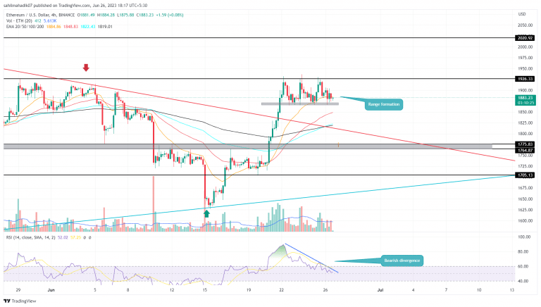A recuperação contínua do preço do Ether (ETH) atingiu um grande obstáculo ao chegar na região de US$ 1.926. Nos últimos quatro dias, o preço da moeda apresentou três tentativas fracassadas de ultrapassar essa barreira, indicando que os vendedores estão defendendo ativamente esse nível.