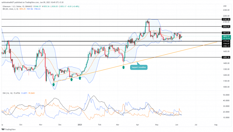 Apesar da liquidação que ocorreu em 5 de junho, o preço do Ethereum conseguiu se recuperar do suporte de vários meses de US$ 1.775. De fato, a criptomoeda fechou aquele dia em alta superior a 4% mesmo com as fortes vendas.