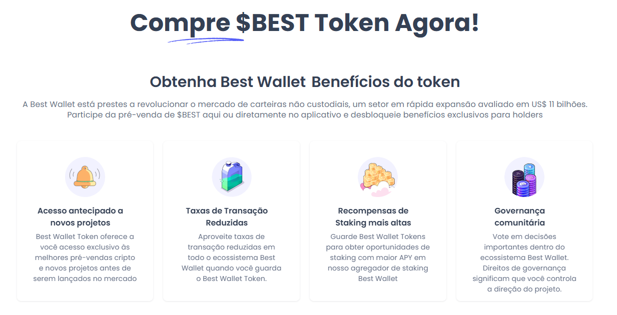 Enquanto o Ethereum testa resistências importantes, outros projetos do mercado ganham tração. Um exemplo é a Best Wallet, uma carteira de criptomoedas que vem se popularizando rapidamente. Diferente das opções tradicionais, a plataforma integra recursos inovadores e conta com um token próprio de governança, o Best Wallet Token.