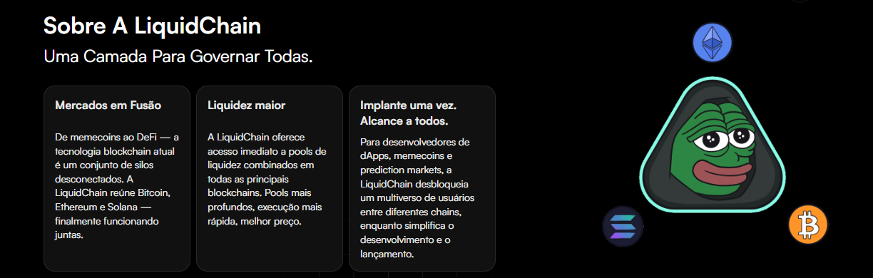 A LiquidChain se concentra em um problema antigo no mundo das criptomoedas: a liquidez fragmentada entre as principais blockchains. A equipe apresenta um sistema estruturado que visa reduzir o atrito, simplificar o desenvolvimento e criar uma camada coordenada para Bitcoin, Ethereum e Solana.