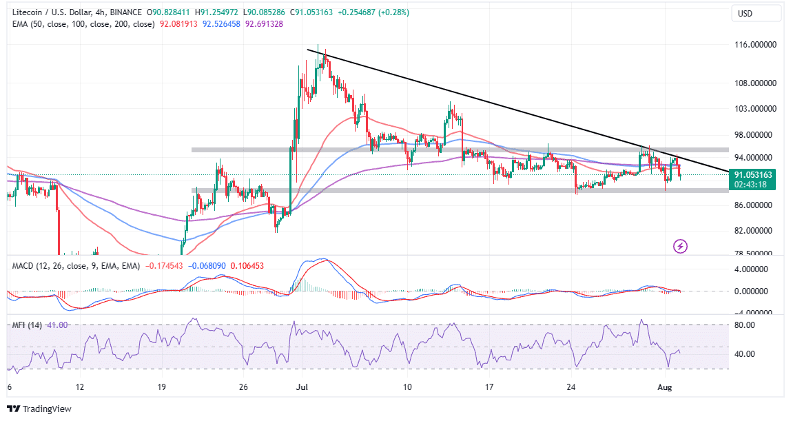 Com o suporte entre US$ 88 e US$ 90 mantendo-se firme, o impacto do halving deve mudar a dinâmica de oferta e demanda em favor dos compradores de Litecoin.