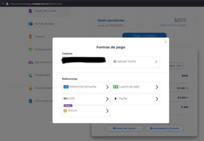 A novidade surgiu no site da Total Play na quinta-feira (18). De acordo com o site, os usuários podem escolher pagar suas contas em dinheiro, PayPal, transferência bancária ou cartão de crédito. Mas entre estas opções, marcada como “nuevo” (novo) está o pagamento via BTC.