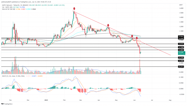 No entanto, o gráfico diário mostra uma rejeição de preço acentuadamente menor em US$ 0,518 em 10 de junho, revelando uma zona de alta acumulação para os compradores. Os compradores de MATIC podem iniciar uma nova recuperação a partir deste nível?