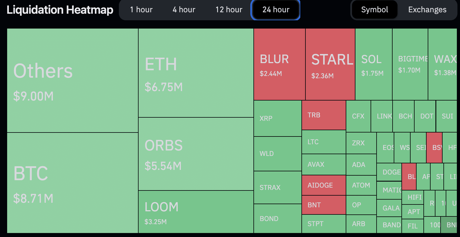 Já as quedas das liquidações atingiram um patamar menor, de apenas 10%, o que fez o volume cair para US$ 60,6 milhões – US$ 43,7 milhões em posições compradas e US$ 17 milhões em posições vendidas. O volume de outras criptomoedas liderou as quedas dos comprados com US$ 9 milhões, ao passo que as liquidações de BLUR causam perdas de US$ 2,4 milhões em quem apostou na queda.