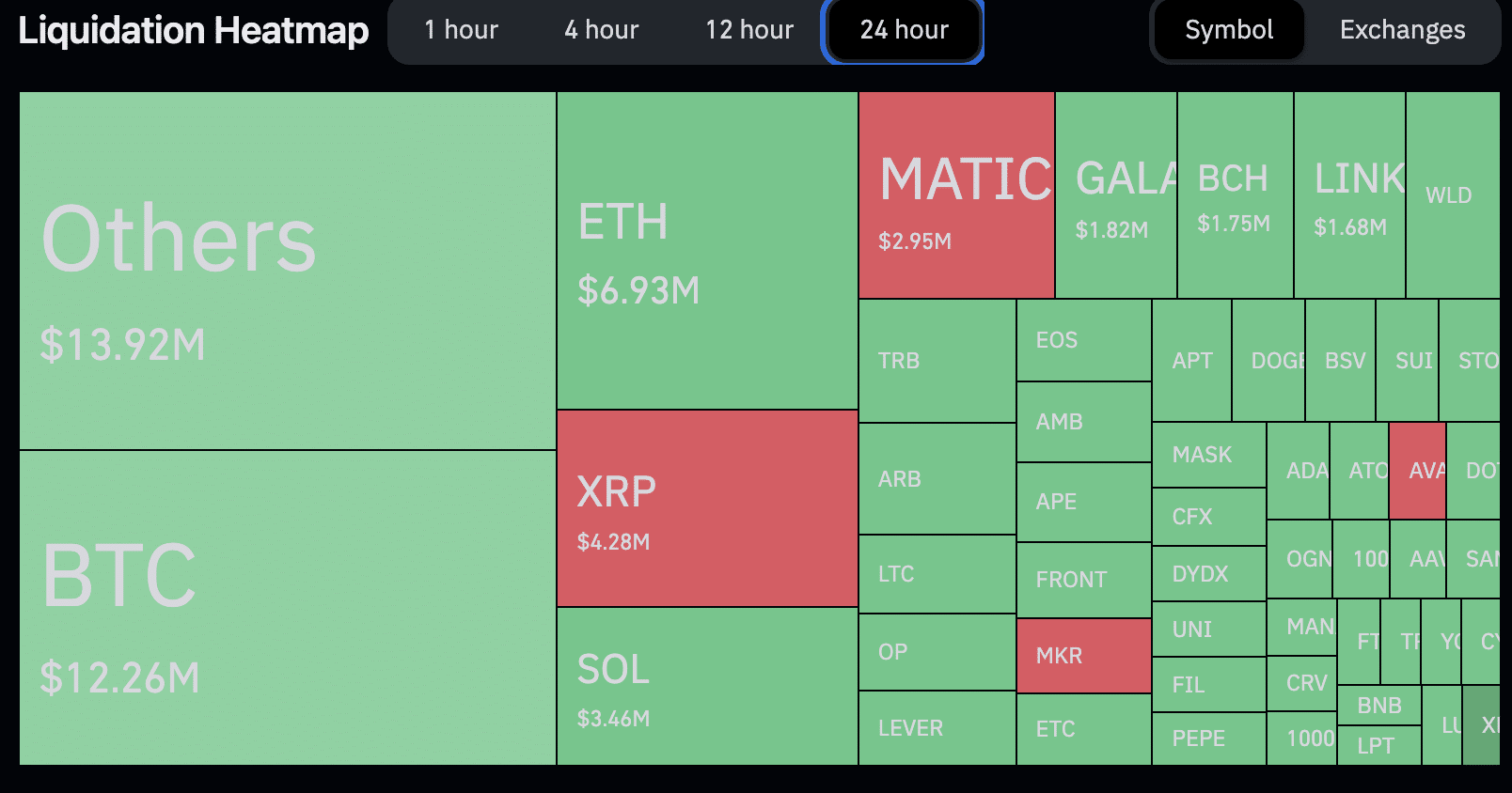 A maior queda, no entanto, ficou com as liquidações, que perderam mais de 31% e viram os volumes caindo para US$ 72,1 milhões. Desse valor, a maior parte (US$ 54,6 milhões) partiram de operações compradas no mercado, mas dessa vez outras criptomoedas registraram as maiores perdas do dia.