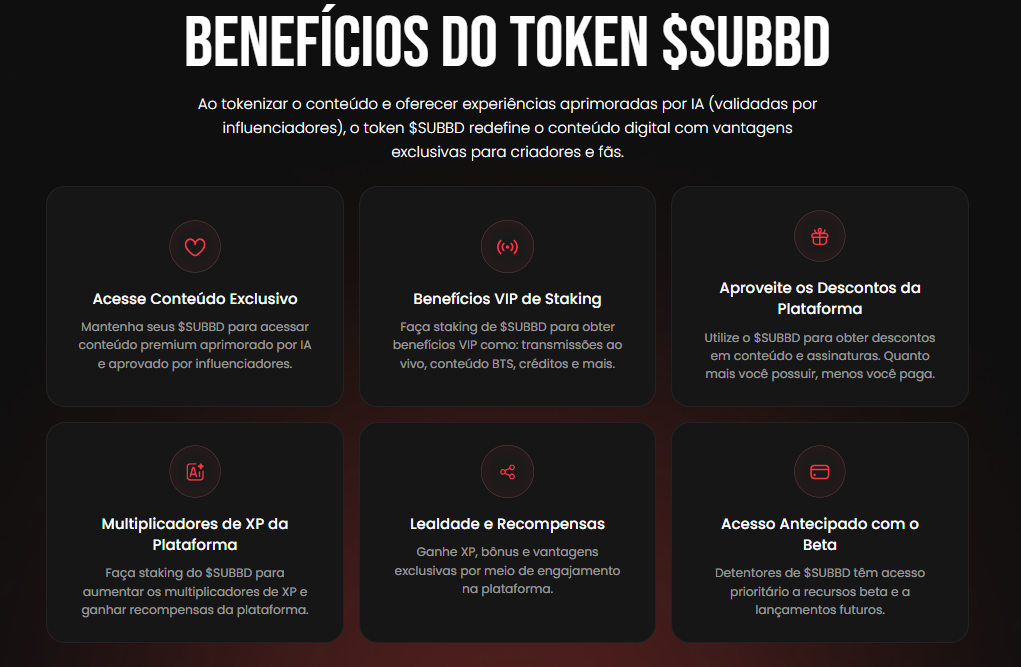 Enquanto a PUMP enfrenta um possível cenário de queda, outros projetos ganham destaque por propostas inovadoras. Este é o caso do SUBBD Token, iniciativa que une blockchain e inteligência artificial para transformar o mercado de conteúdo digital.