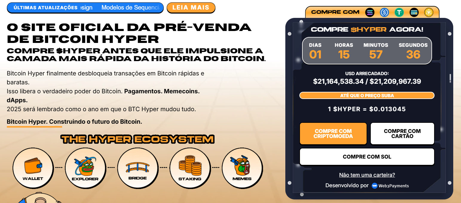 Além da Pump.fun, outros projetos cripto também estão aumentando em relevância no mercado. Um exemplo recente é o Bitcoin Hyper (HYPER).