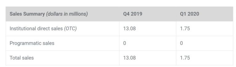 Até o segundo trimestre de 2019, as vendas programáticas representavam a maior parte do volume de vendas da Ripple. Mas a empresa decidiu se separar dessas vendas por causa de relatórios de volumes inflados. “A Ripple continua avaliando seus benchmarks diante de desafios, como o volume falso, que continuam a persistir no setor”, afirmou a empresa no início deste ano.