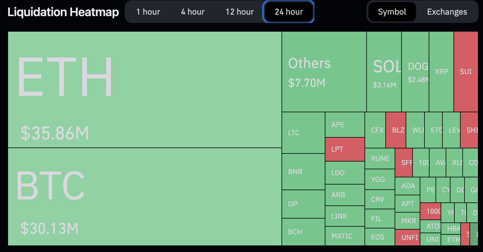 A maior liquidação individual atingiu US$ 4 milhões em um contrato de ETH negociado na Uniswap. No total, 34.214 traders foram liquidados em todas as posições nas últimas 24 horas.