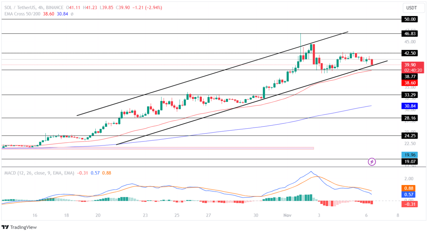 No entanto, mesmo com as vendas, o preço da SOL se mantém firme em sua tendência de alta. Nesse sentido, o preço da criptomoeda avança para romper a barreira de US$ 50, o que daria uma alta de 12% frente aos preços atuais. Veja como esse cenário pode se materializar.