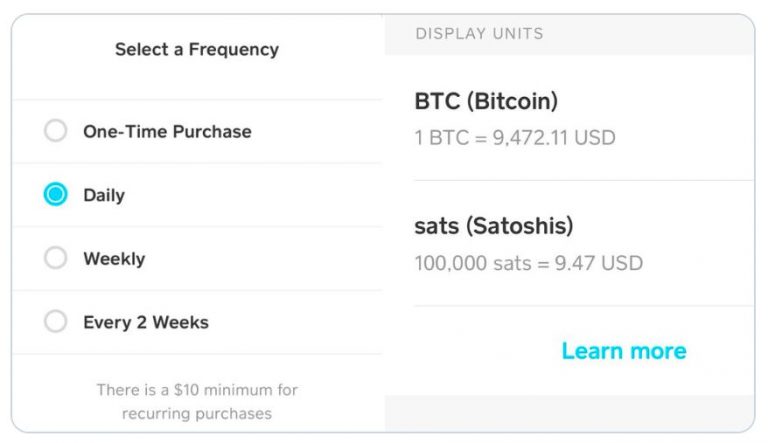 De acordo com a empresa, a ferramenta permite a compra fracionada para investidores que pensam no longo prazo. “Você não precisa de um timing perfeito se pensa a longo prazo. Ao diluir suas compras, você pode minimizar o impacto das oscilações do mercado”, disse o Cash App.