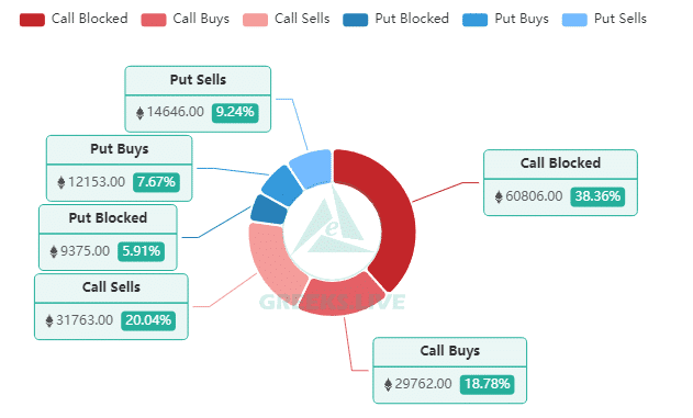 Nas atividades comerciais recentes, o Ethereum testemunhou um aumento nas negociações em bloco, com 60.000 opções representando 40% do volume total do dia, totalizando um valor nocional de US$ 120 milhões.