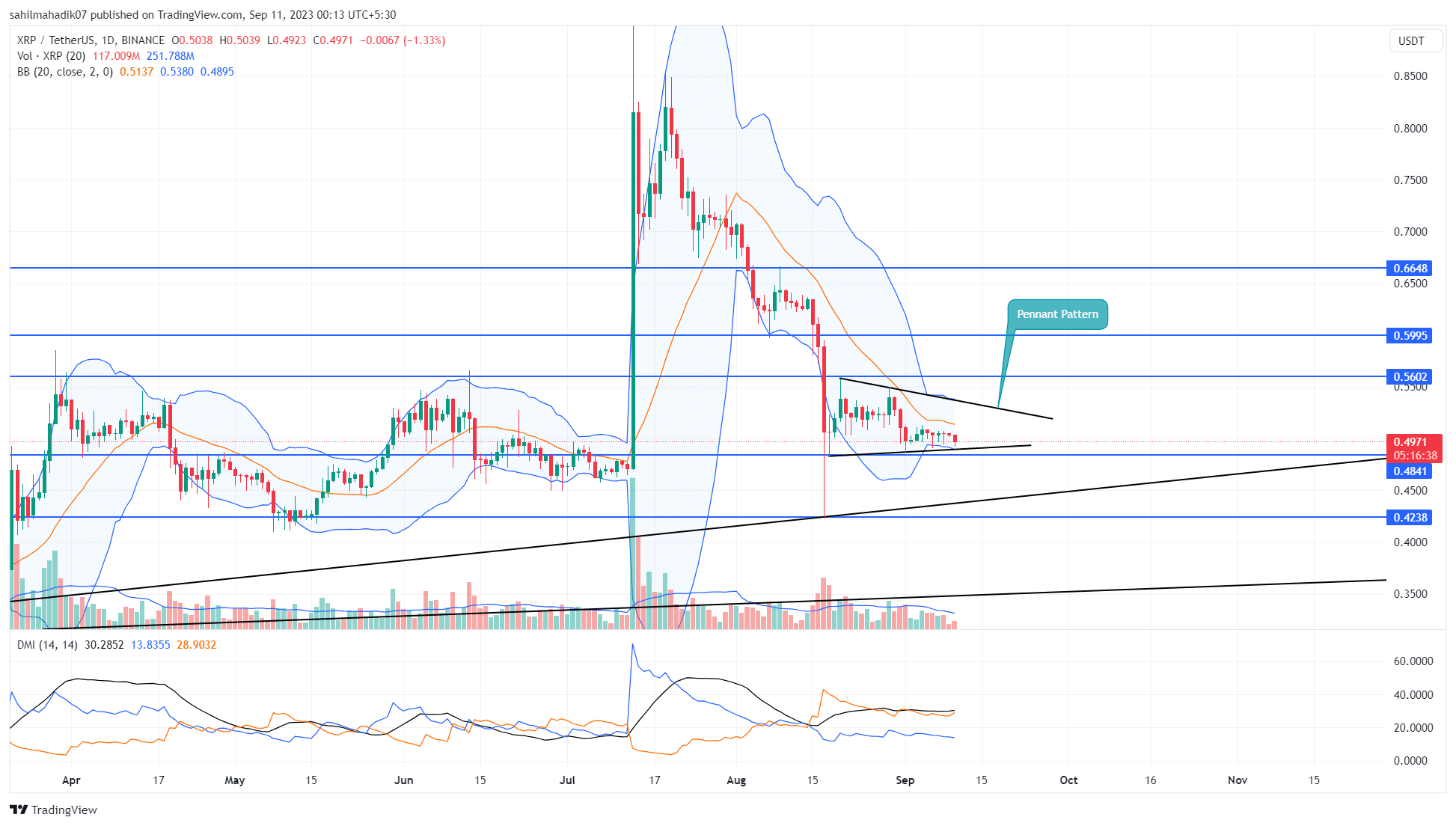 Embora os tons de baixa ditem a tendência atual do XRP, é crucial lembrar que, enquanto a flâmula se mantiver, a tendência de lateralização permanecerá dominante. Numa nota mais positiva, se o preço subir além do limite superior do triângulo, poderá catalisar um influxo de compradores e impulsionar uma recuperação para US$ 0,60.