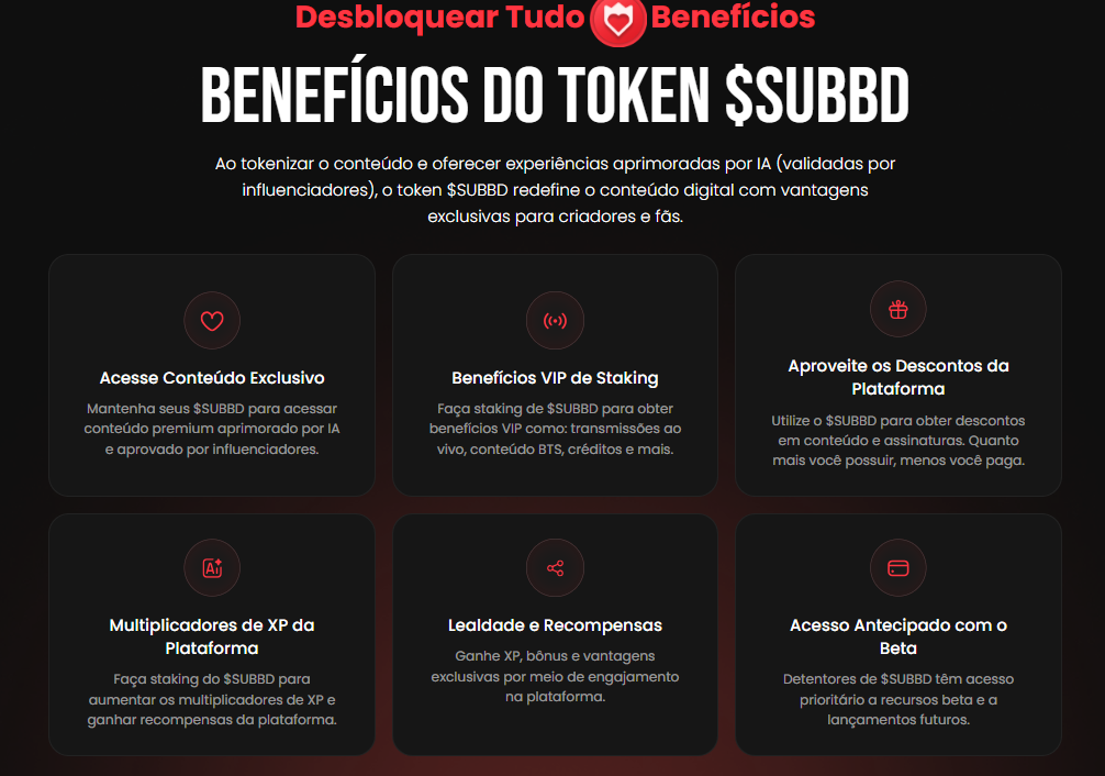 Esse é o caso do SUBBD Token. A plataforma combina blockchain e inteligência artificial para oferecer ferramentas voltadas a criadores de conteúdo.